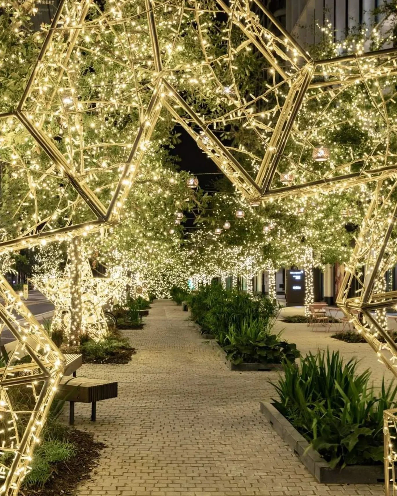 For Tampa’s Water Street District, I led the design and creative direction of a multi-block holiday program spanning four city blocks. The installation combined large-scale spectacle with custom artistry, featuring over 100 illuminated trees, a 30-foot signature holiday tree, and a vibrant walkthrough arch crafted from recycled wood spheres. To create distinctive focal points, I designed unique sculptural pieces made of mirrored plexiglass, including a collection of lotus flowers and two oversized teddy bear installations. These elements balanced sustainability, innovation, and festive energy, while ensuring a cohesive visual identity across the district.